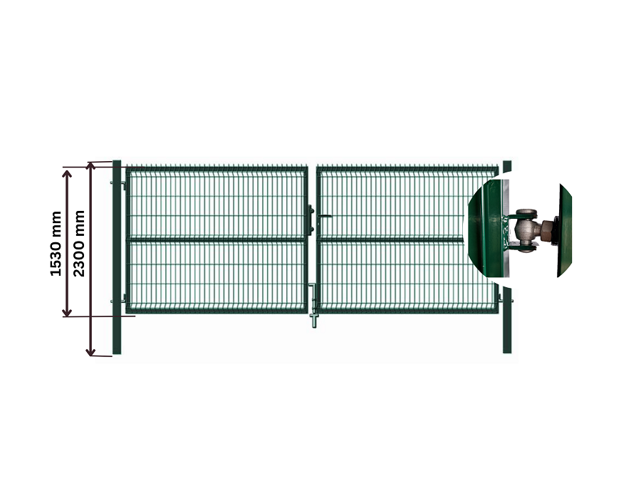Vartai yra cinkuoti ir padengti žaliais dažais. Karštas cinkavimas užtikrina vartų atsparumą korozijai ir gražią išvaizdą ilgus metus. Komplekte – sustiprinti vyriai, stulpai, spynos komplektas.